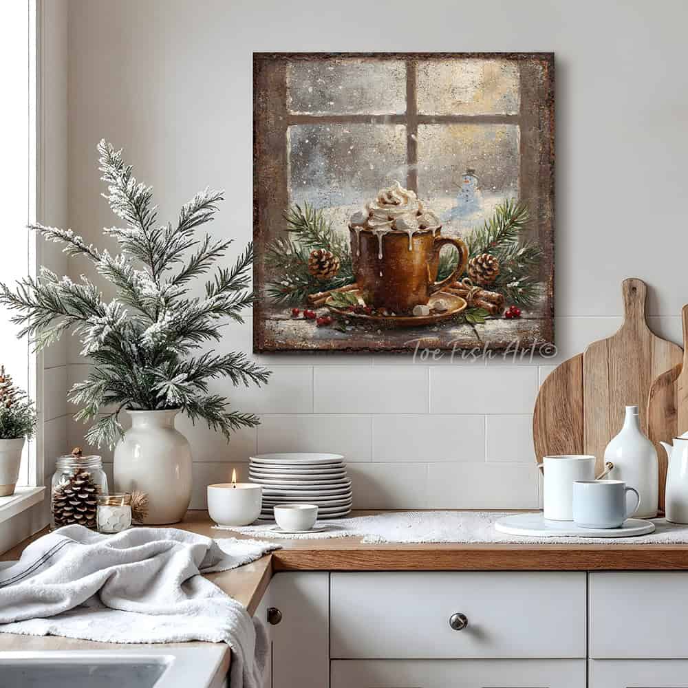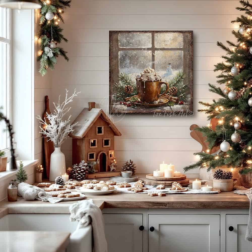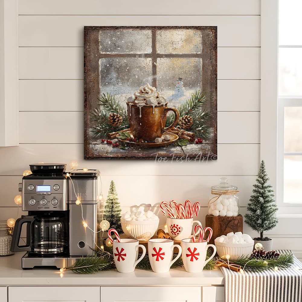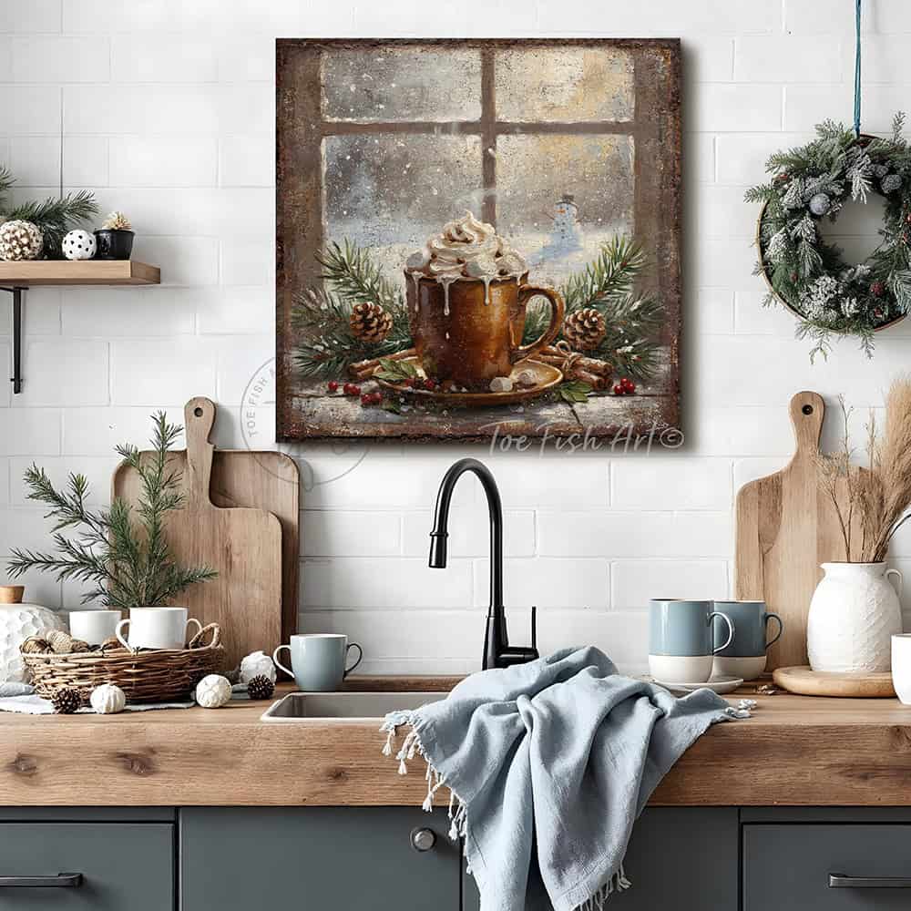 Rustic Winter Hot Cocoa Wall Art | Cozy Holiday Kitchen & Christmas Décor