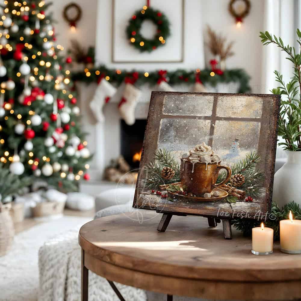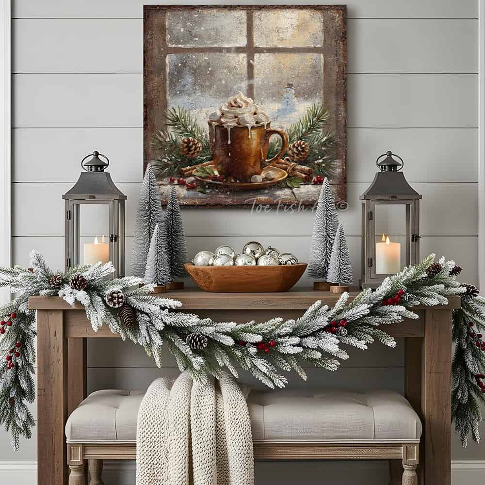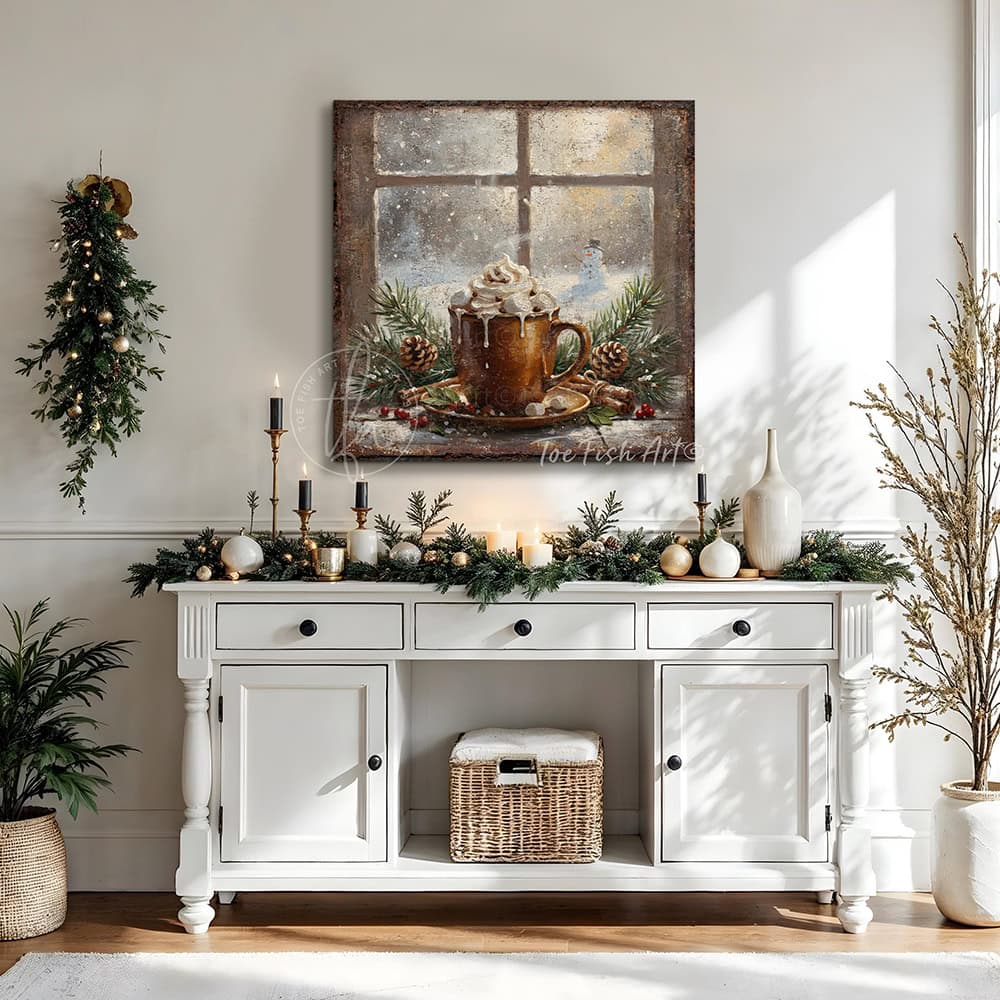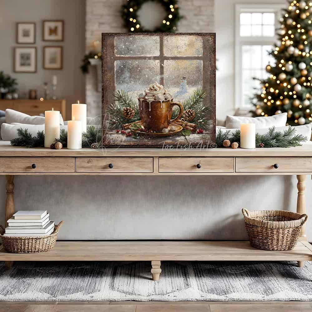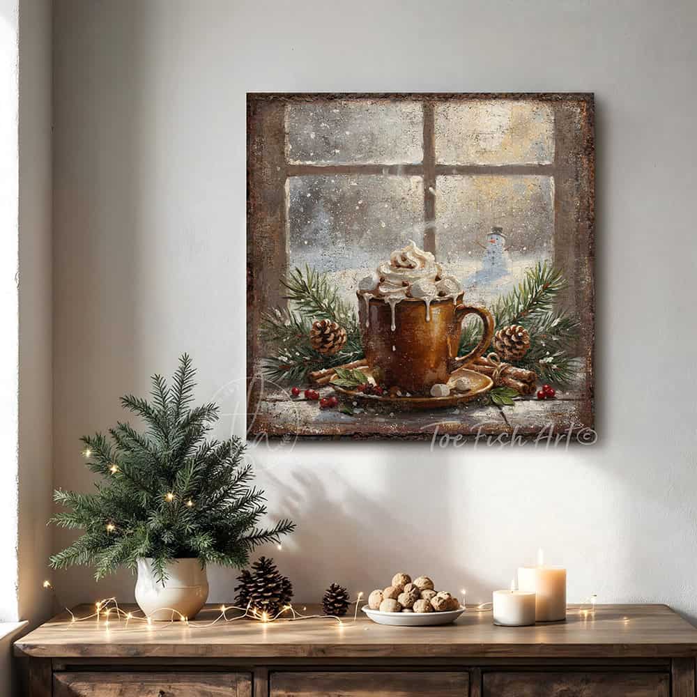 Rustic Winter Hot Cocoa Wall Art | Cozy Holiday Kitchen & Christmas Décor