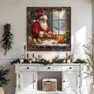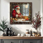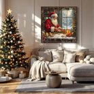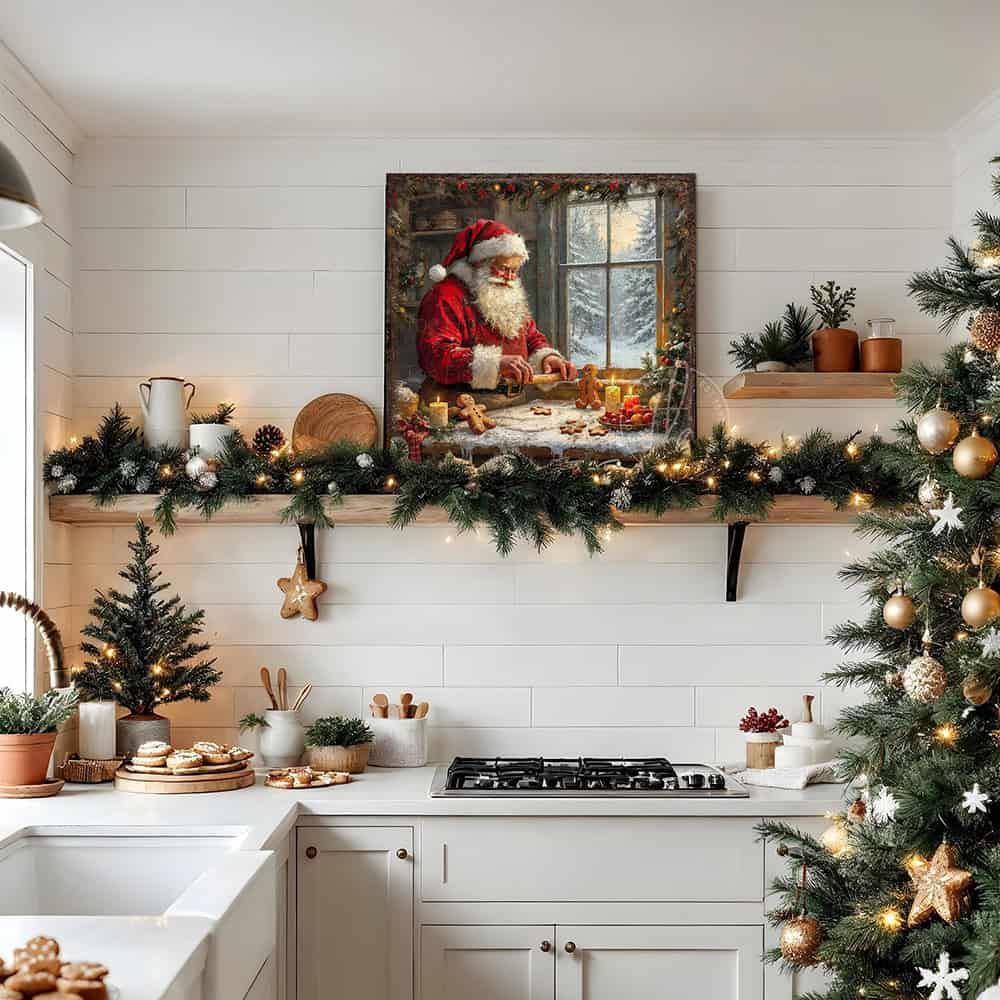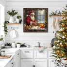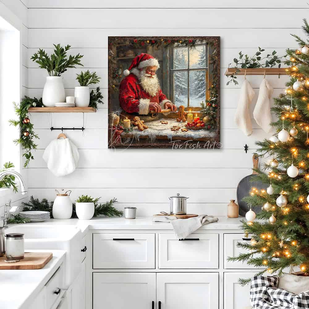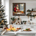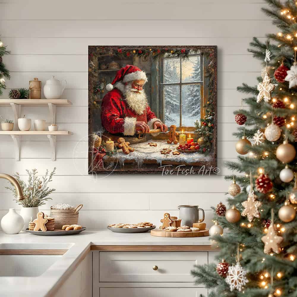 Santa Baking Gingerbread Cookies Christmas Wall Art | Cozy Holiday Kitchen Décor