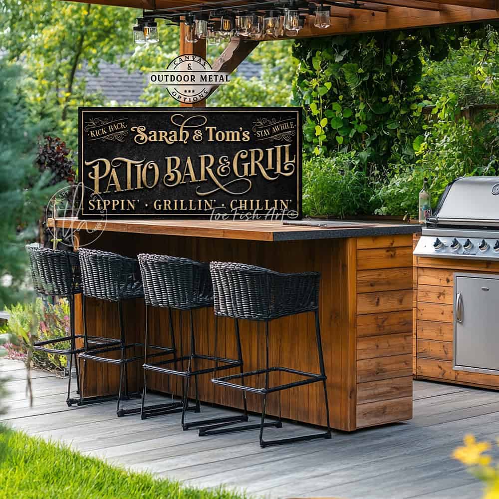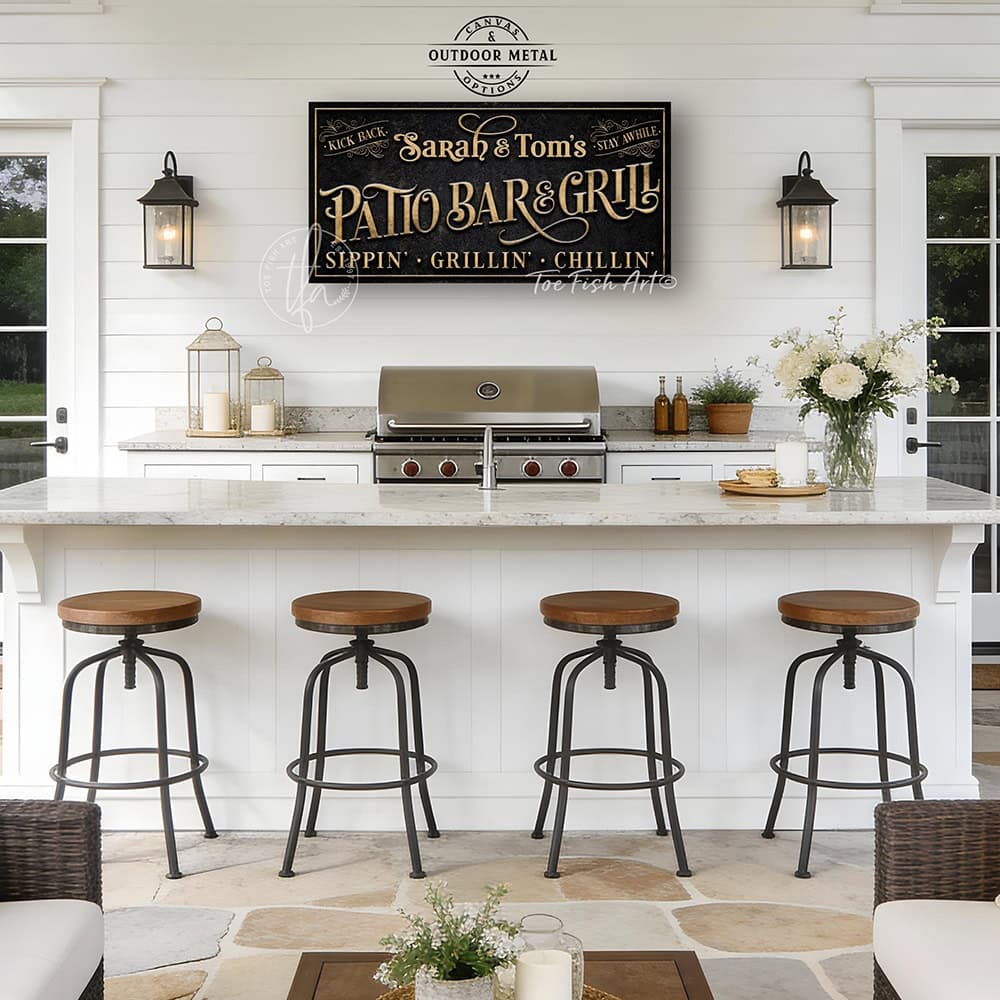 Personalized Patio Bar & Grill Wall Art | Canvas or Outdoor Metal Sign