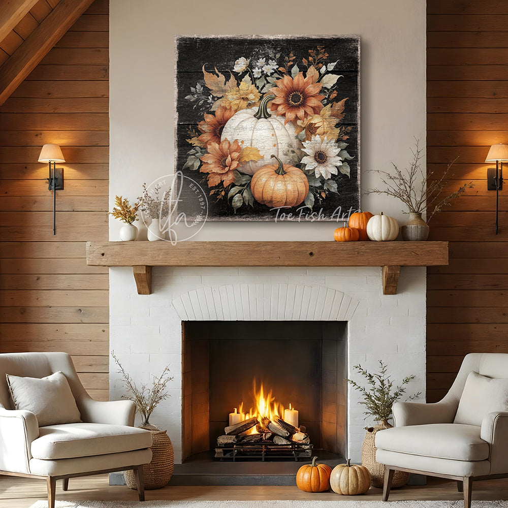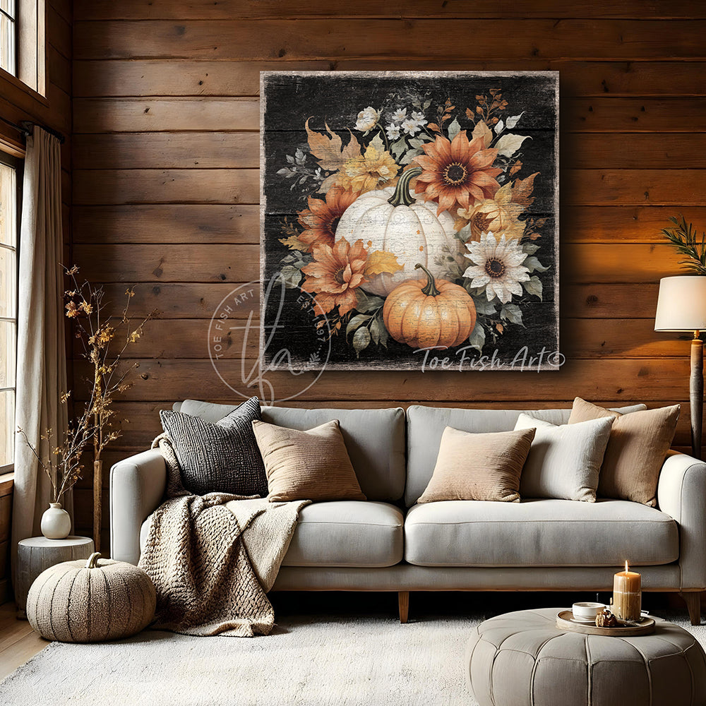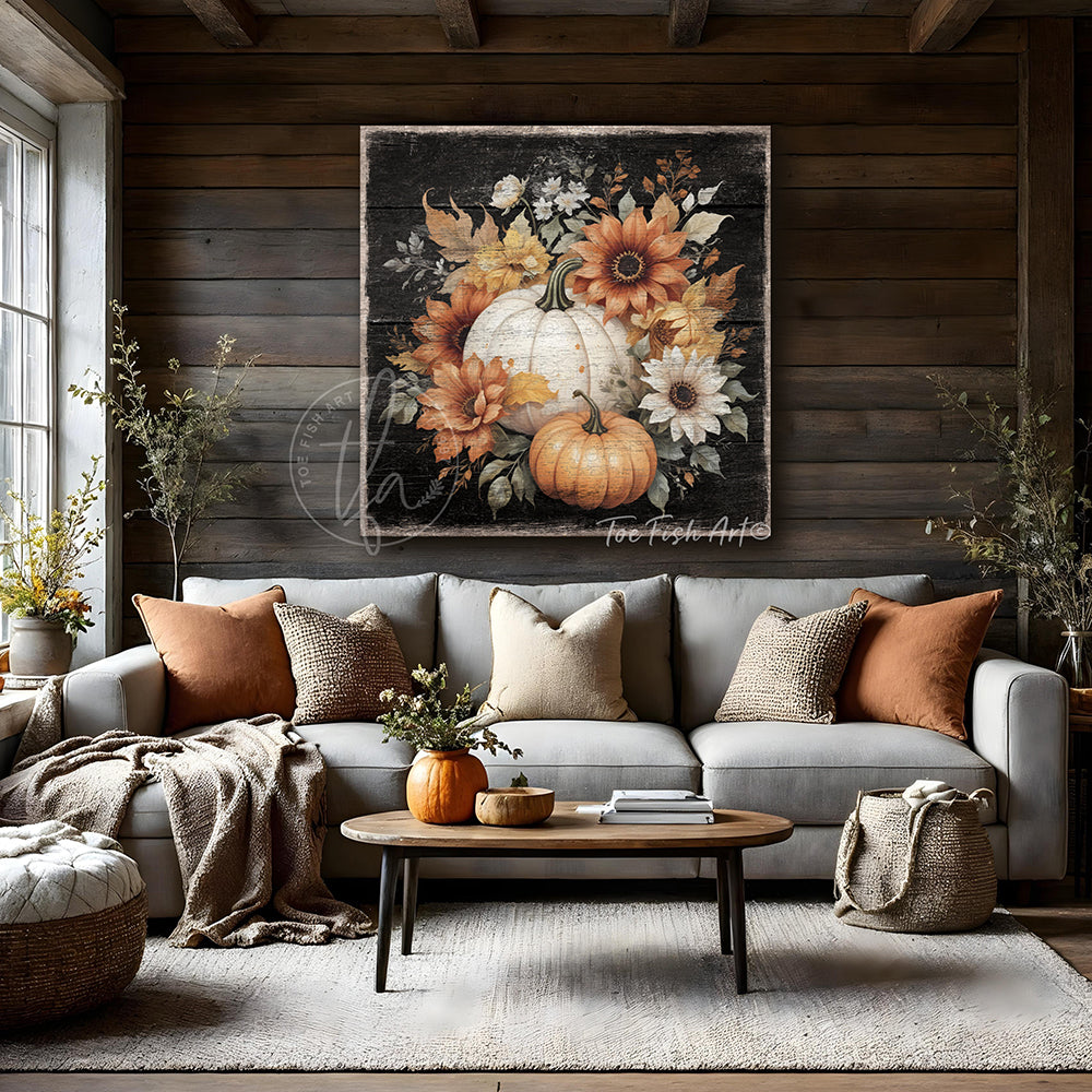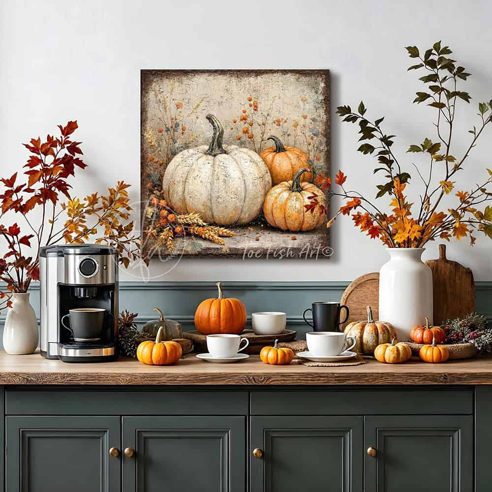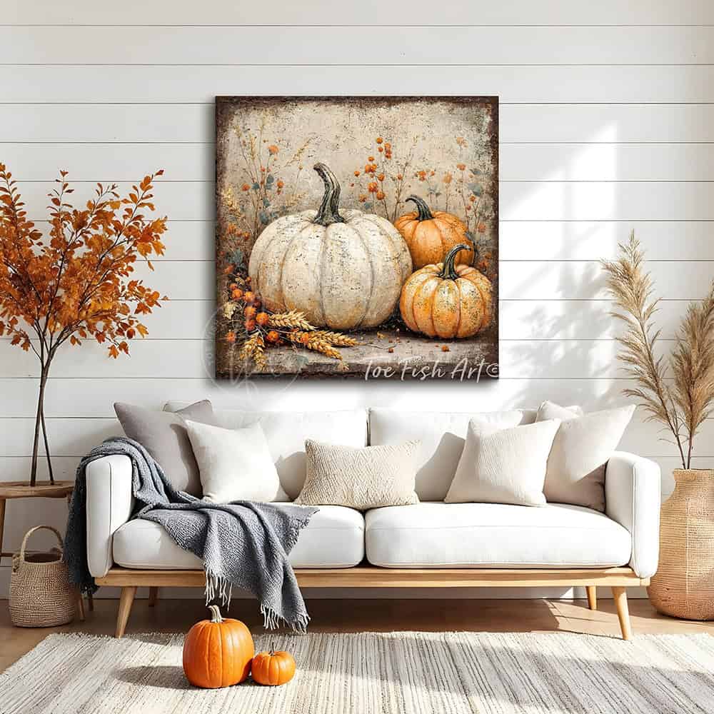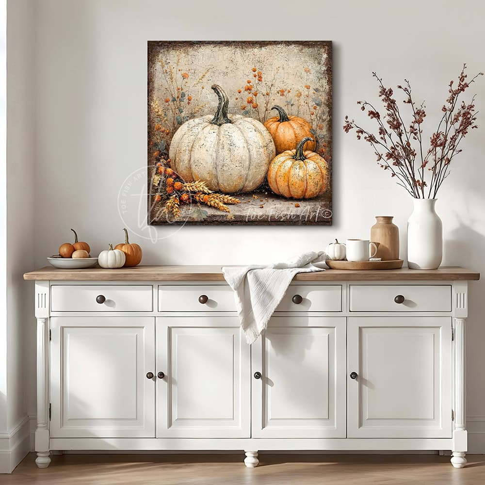 Rustic Fall Pumpkin Wall Art | Autumn Harvest Farmhouse Decor Print