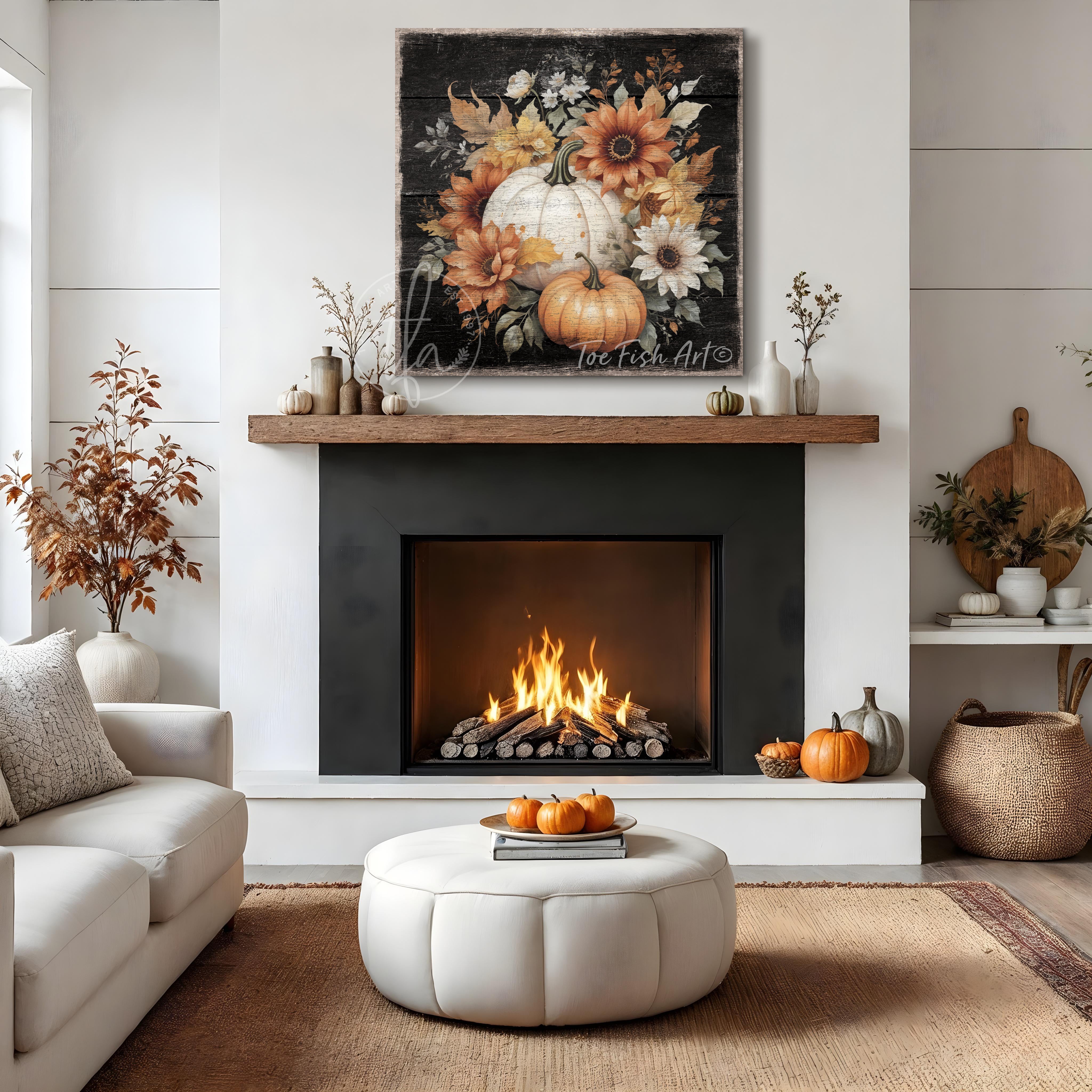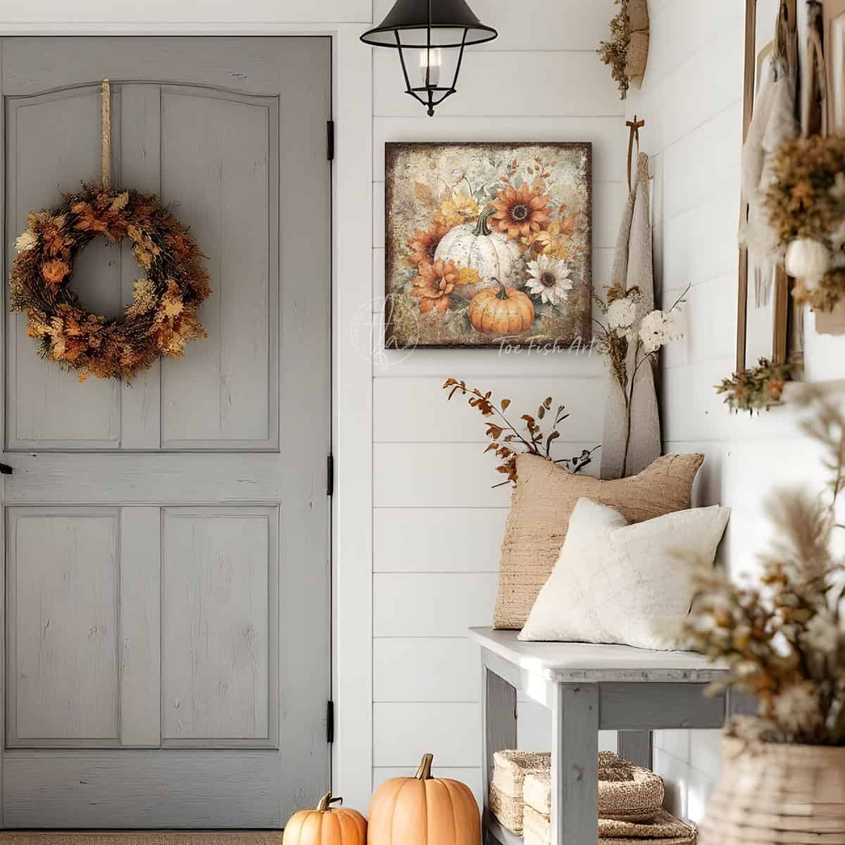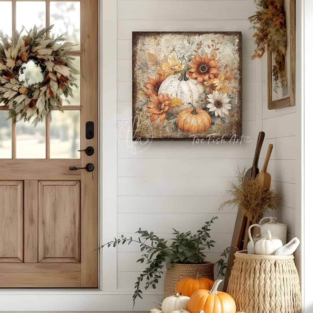 Rustic Fall Pumpkin and Sunflower Wall Art | Vintage Farmhouse Autumn Home Décor