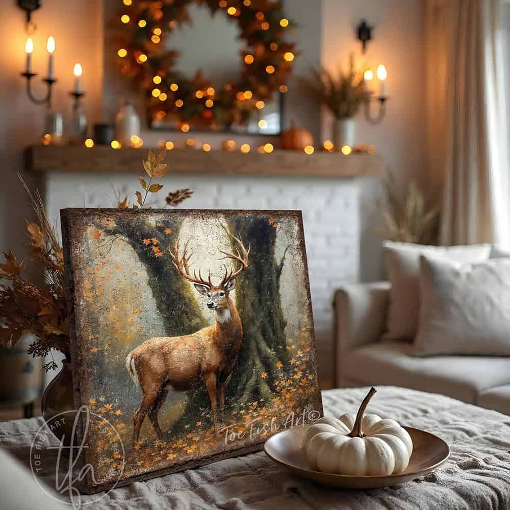Majestic Buck in Autumn Forest Wall Art | Rustic Wildlife Deer Canvas Print