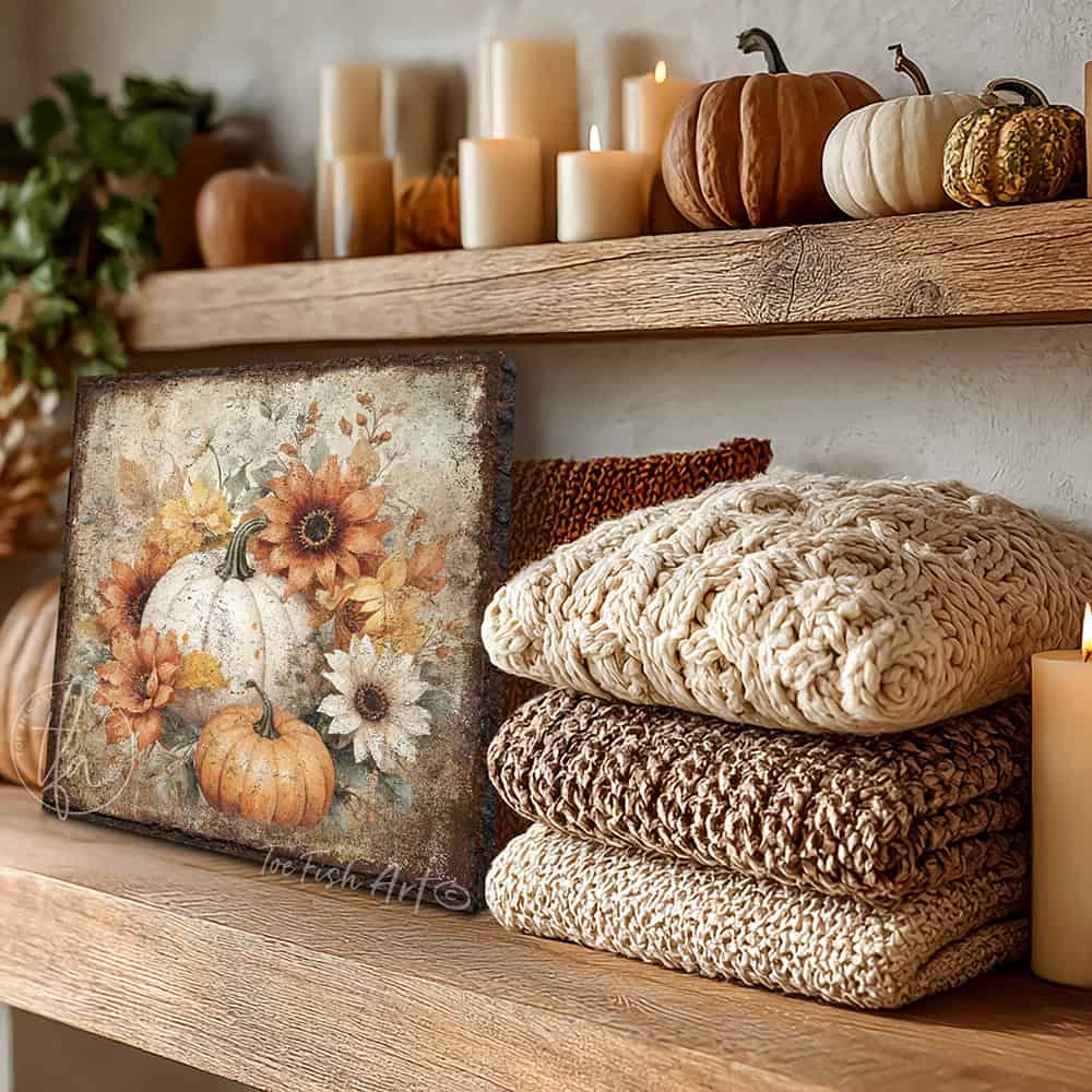Autumn Harvest Heirloom Pumpkins Vintage Wall Art, Modern Farmhouse Rustic Fall Decor