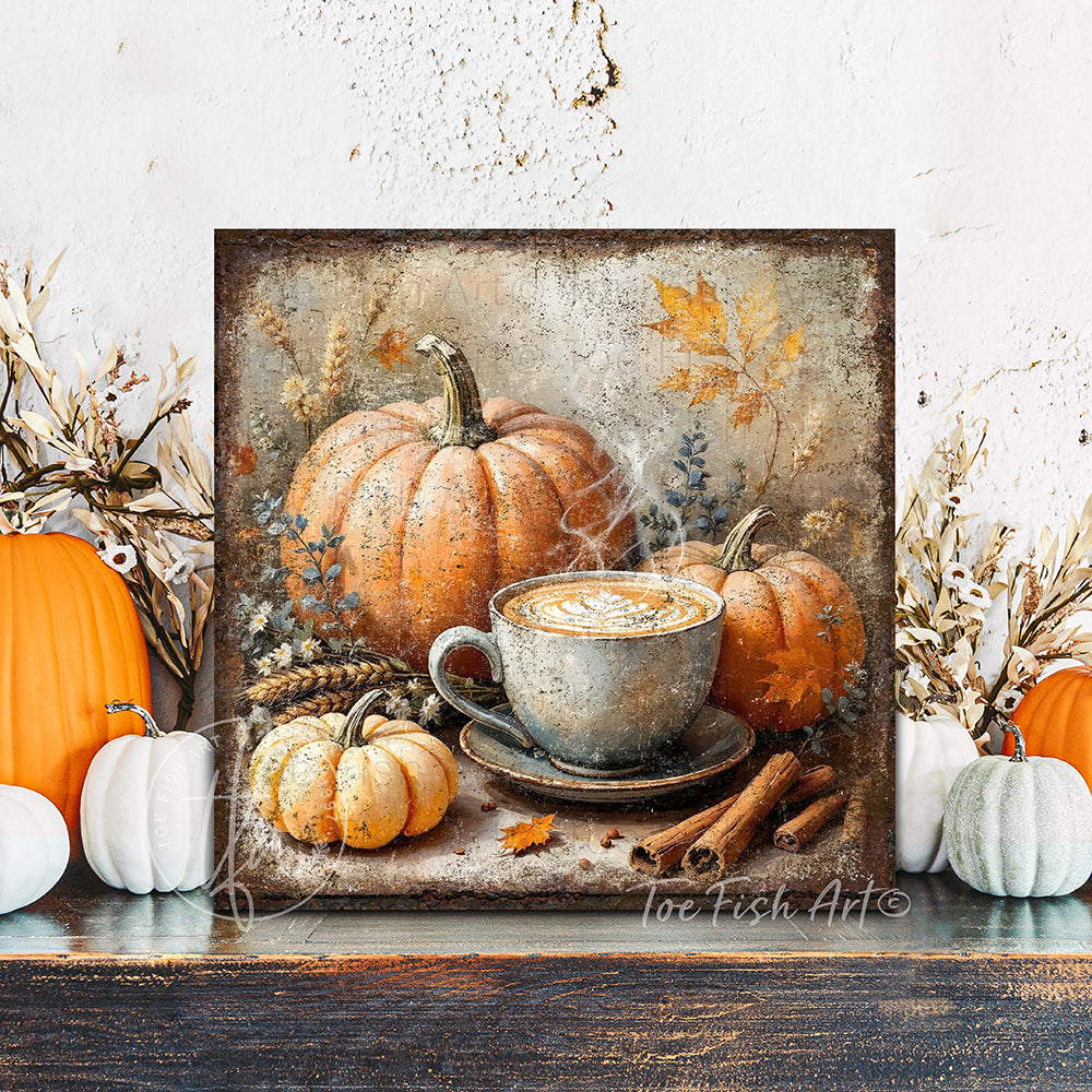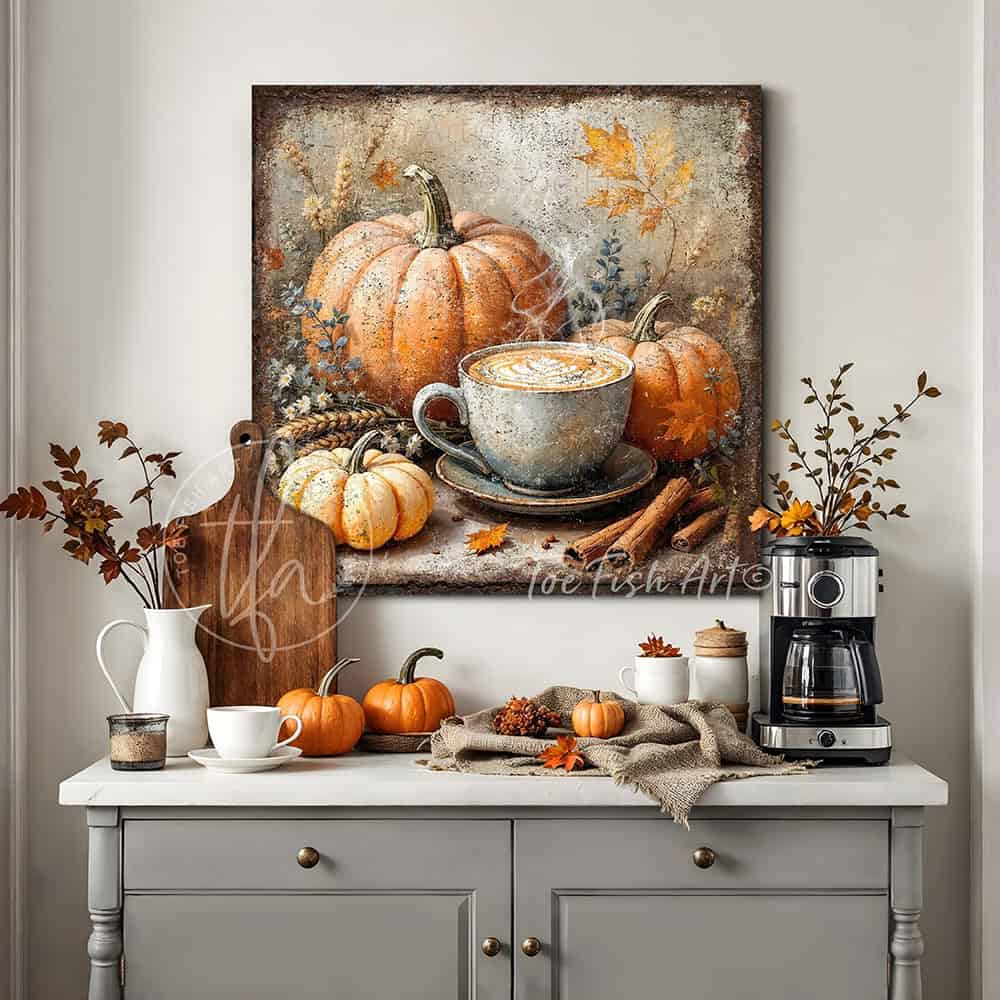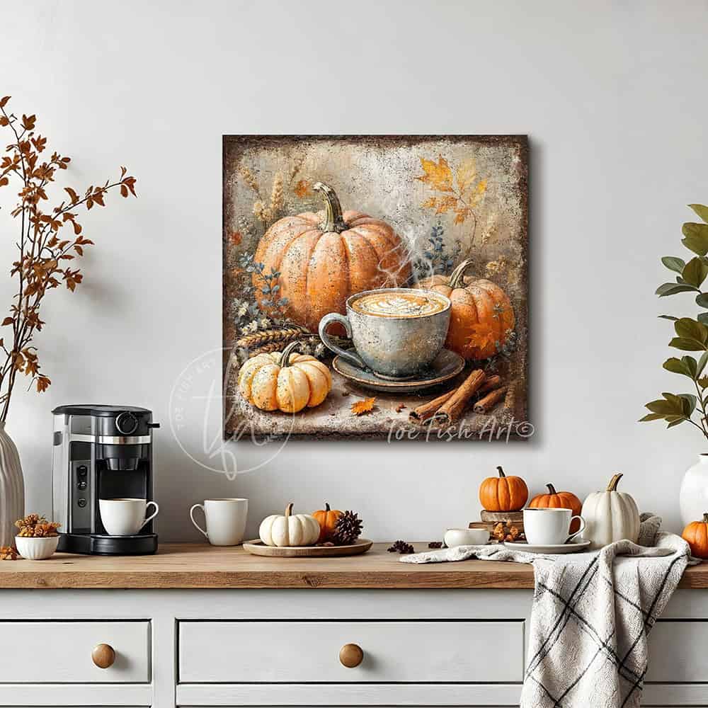 Rustic Pumpkin Spice Latte Wall Art | Cozy Autumn Coffee Kitchen Decor