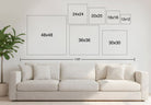 – See the Material and Size options in product menu. Then, carefully measure and mark a size on your wall with blue painters tape, to step back and see that size in your space!