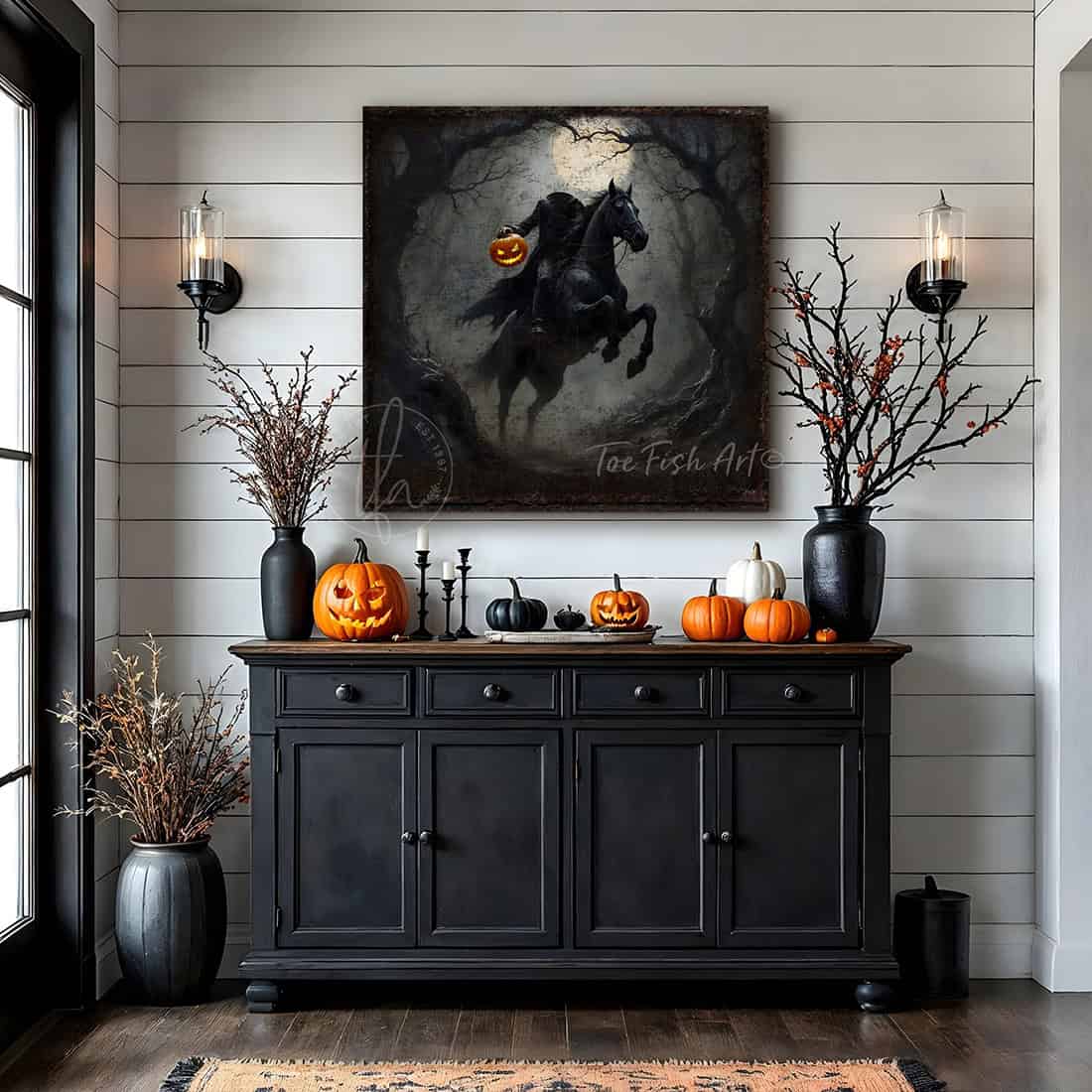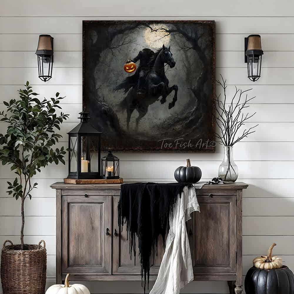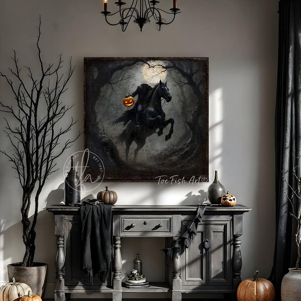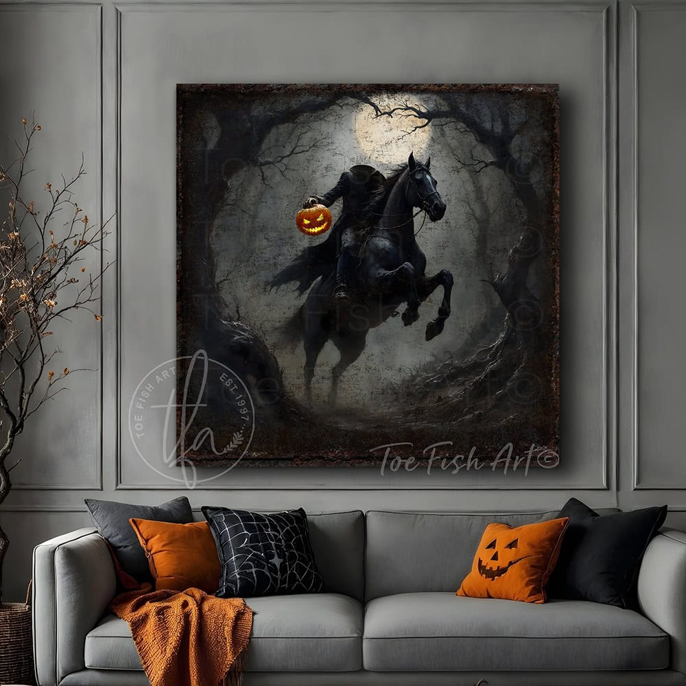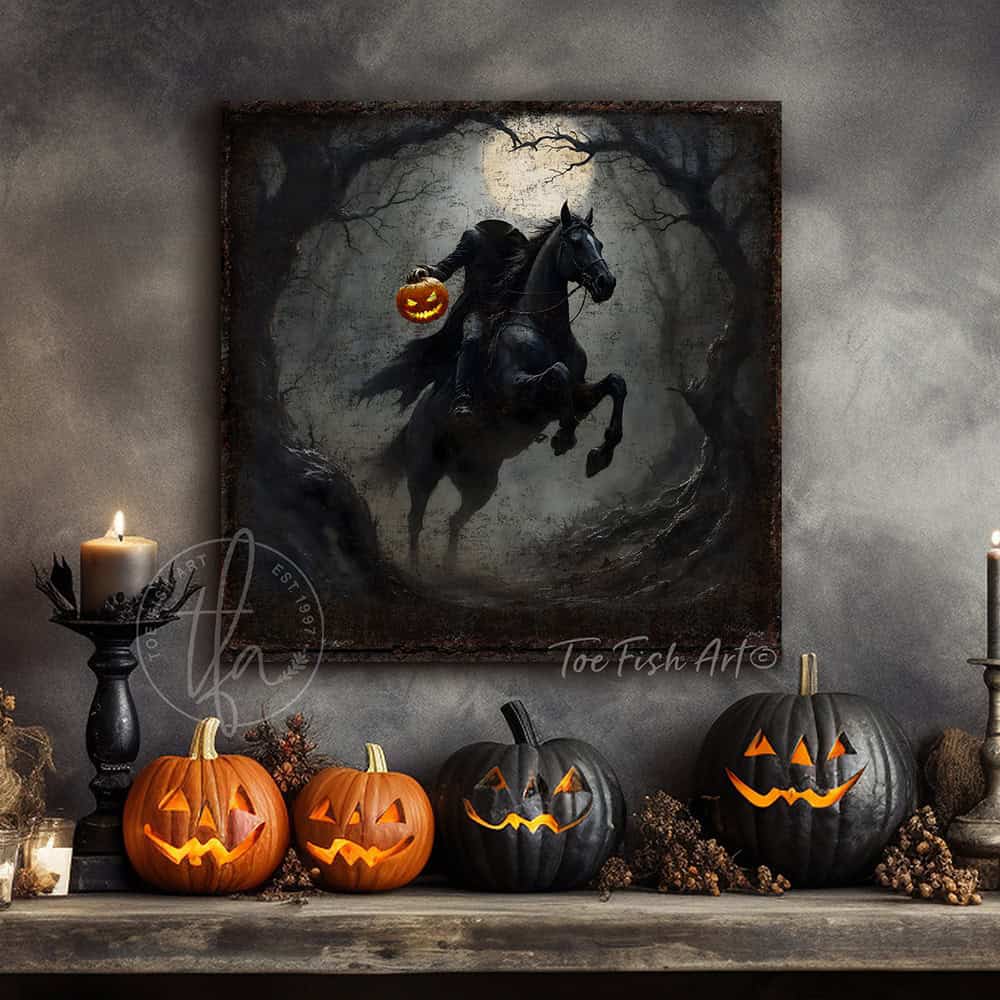 Headless Horseman Halloween Sign - Vintage Gothic Rustic Fall Wall Art Decoration
