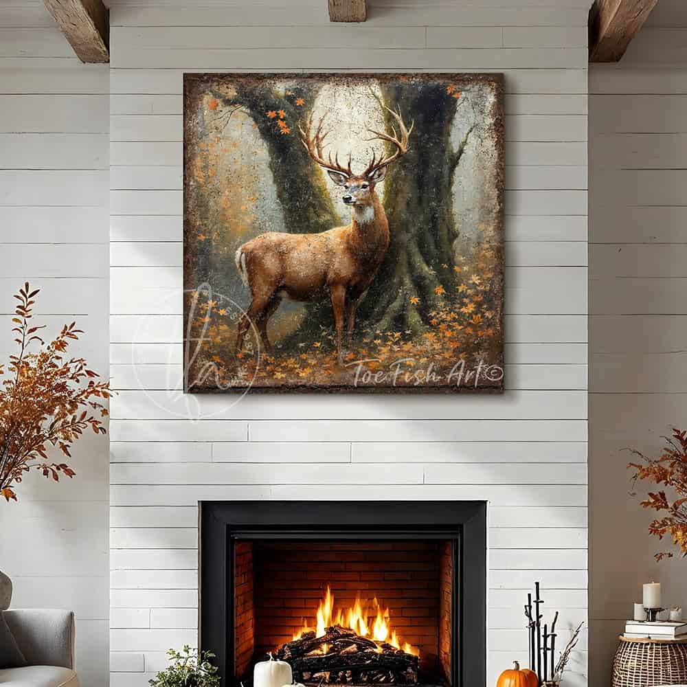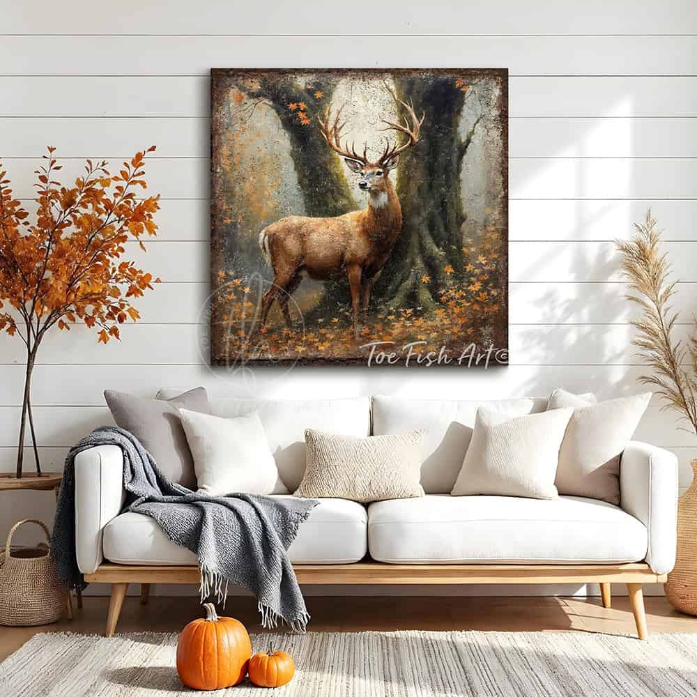 Majestic Buck in Autumn Forest Wall Art | Rustic Wildlife Deer Canvas Print
