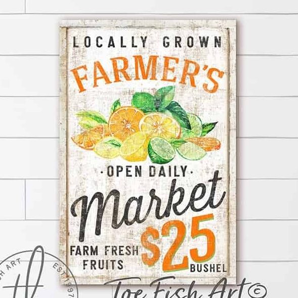 Farmers Market Colorful Citrus Canvas or Outdoor Metal Sign with color options