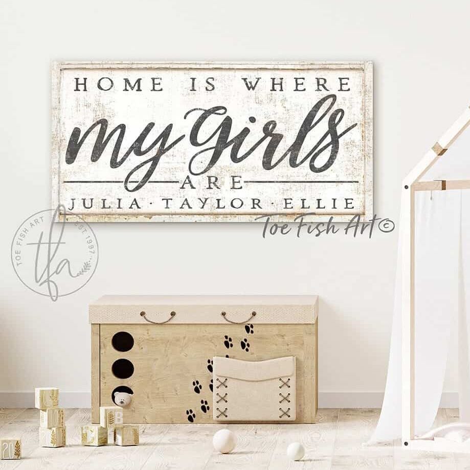 Home Is Where My Girls Are Sign Personalized Names