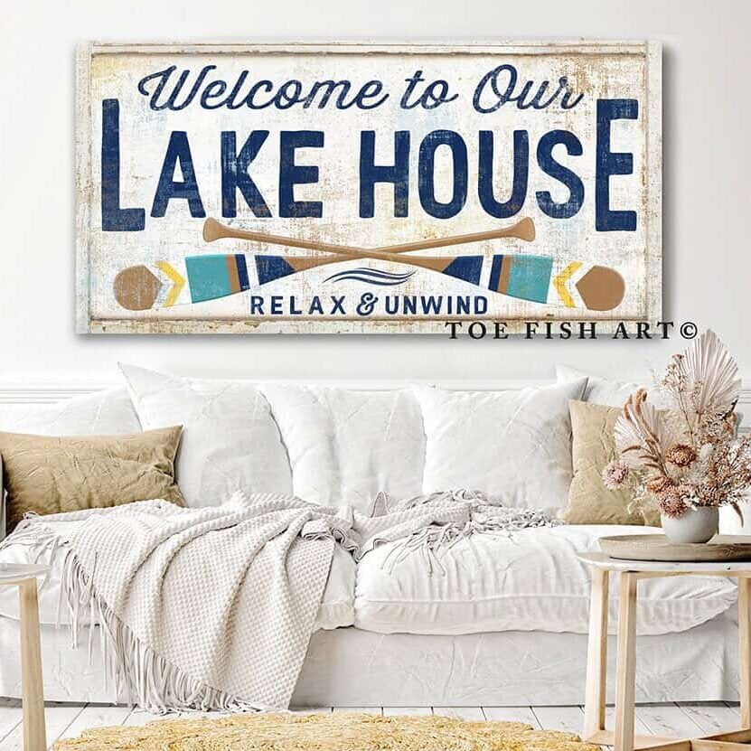 Welcome to Our Lake House Colorful Sign with Wording Options