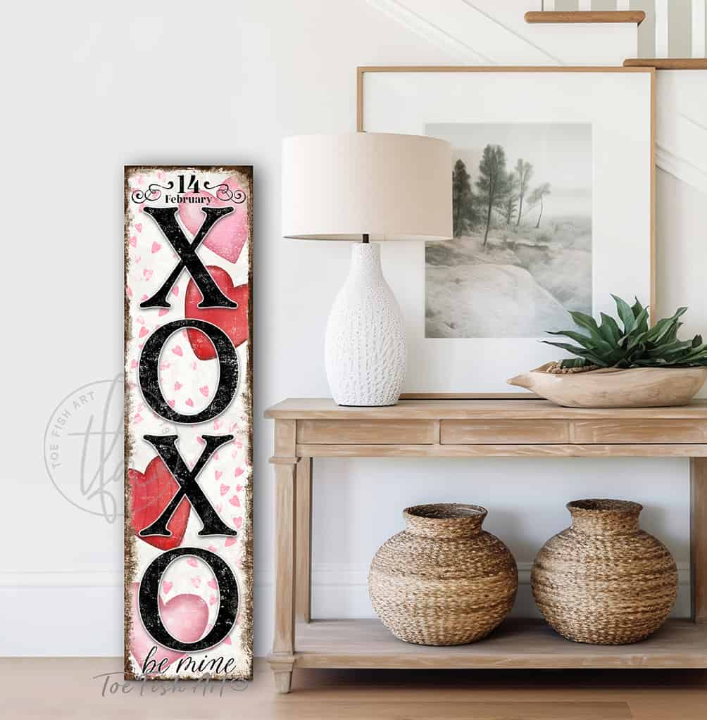XOXO Valentine's Decoration Porch Greeter Canvas or Outdoor Metal, Color Options