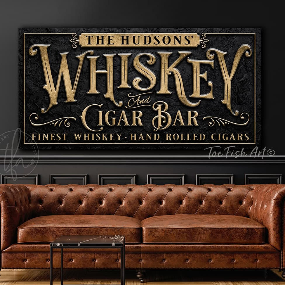 Whiskey and Cigar Bar Personalize-able Sign (color options)