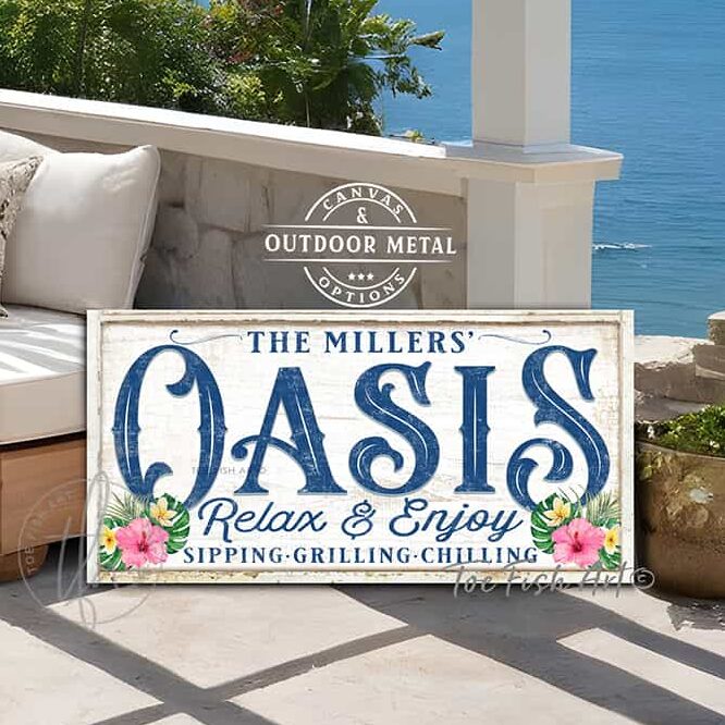 Personalize-able Oasis sign Canvas or Outdoor Metal with wording options