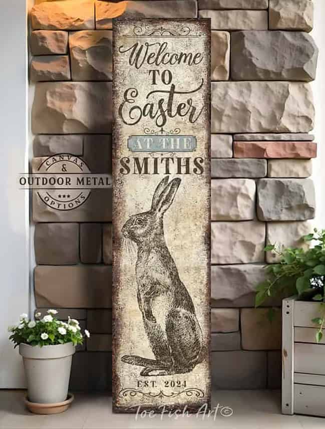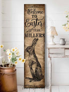 Welcome to Easter Canvas or Outdoor Metal Personalizable Family Name Vertical Porch Greeter Sign