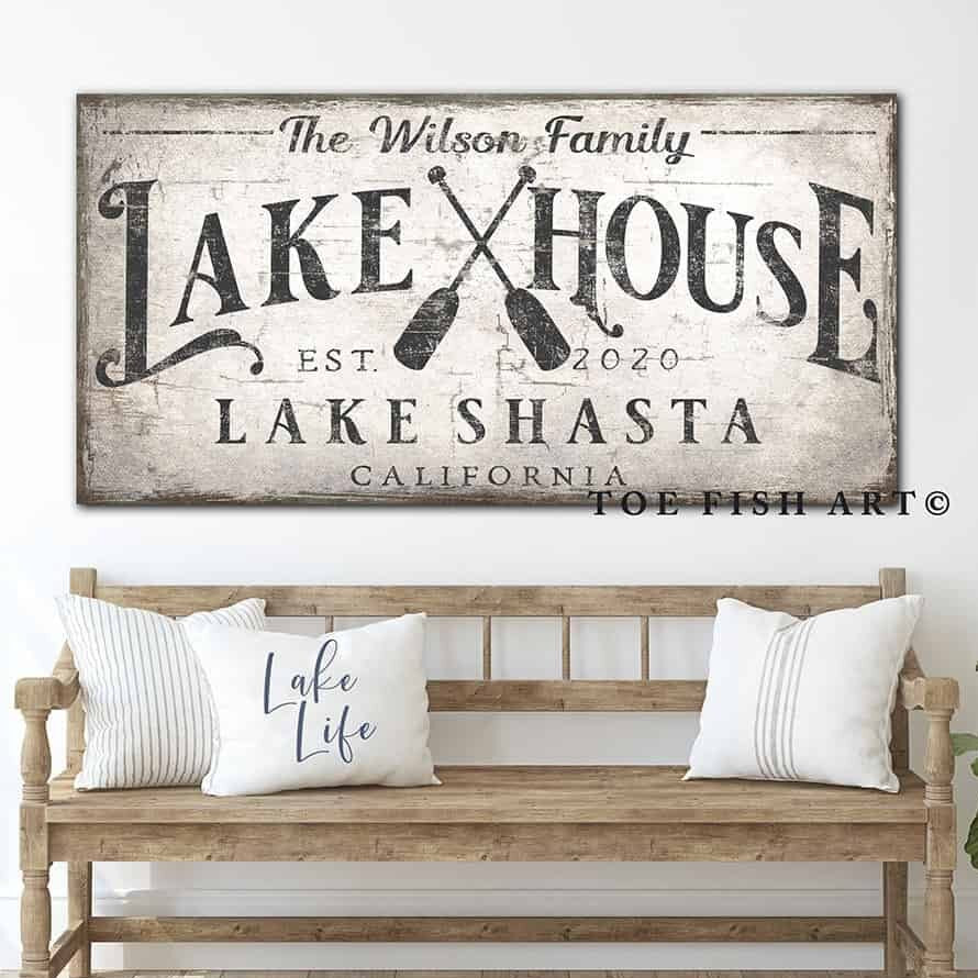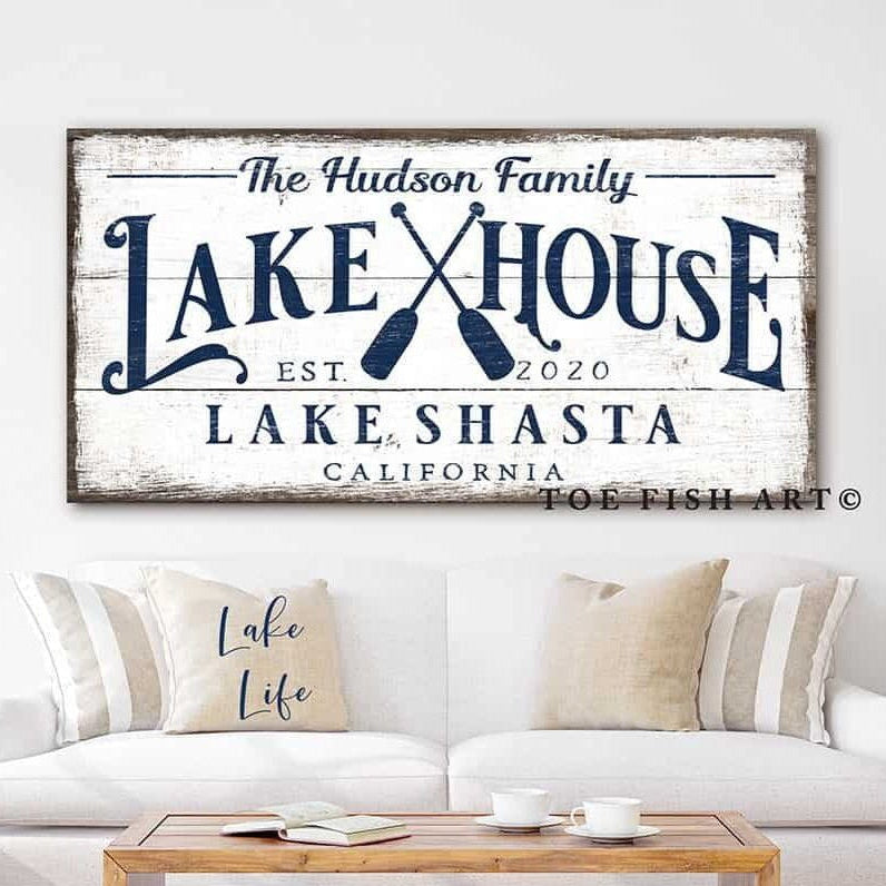Lake House Personalized Canvas or Outdoor Metal Sign (Color Options)